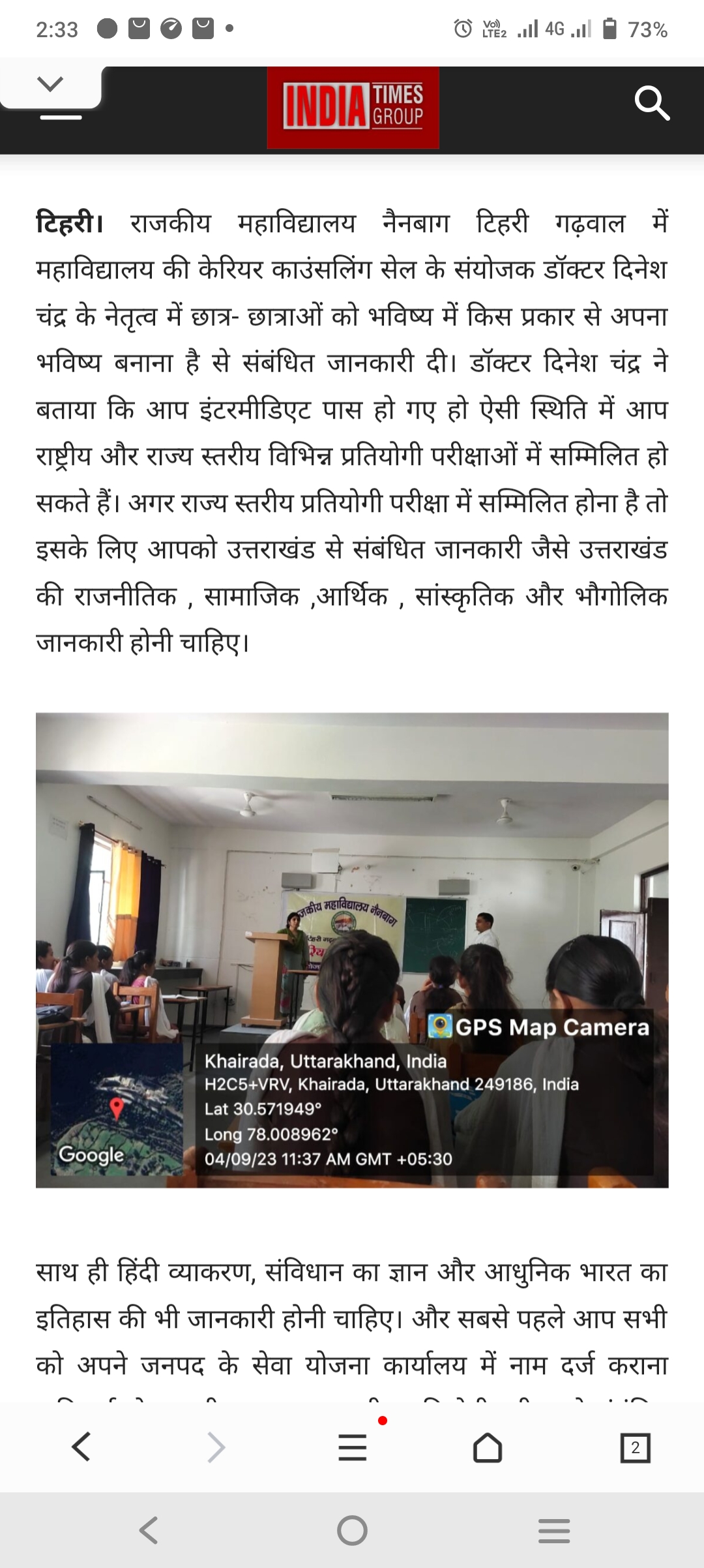 Career Counseling By Hindi Dept