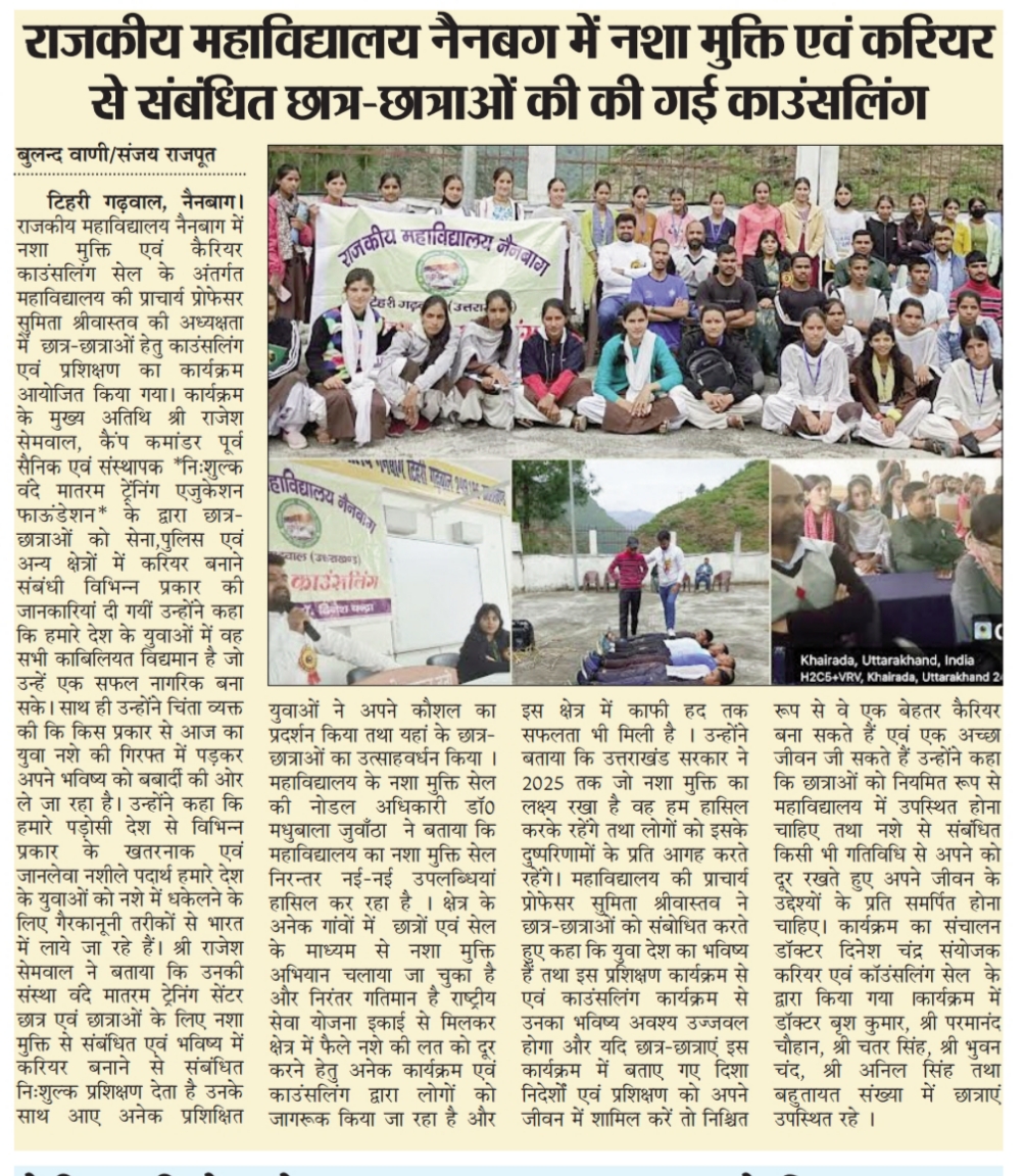 GOVERNMENT DEGREE COLLEGE NAINBAGH TEHRI GARHWAL, 249186